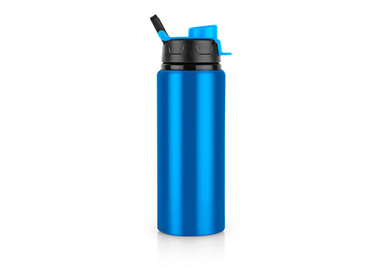 Botella en aluminio con tapa rosca y pitillo ajustable, manija plástica incorporada para transporte. Capacidad 730ml. Peso: 120g. Temperatura recomendada: 10℃ a 100℃. Color: Rojo