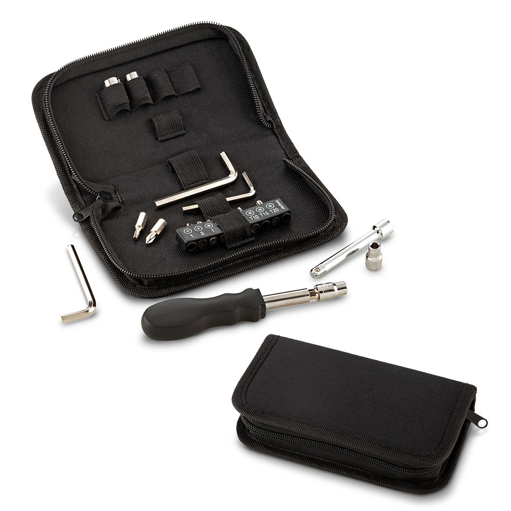 Set de herramientas de 19 piezas estuche en poliester. Medidas Cerrado: 17.5 cm x 9.5 cm x 3.7 cm Marca: 9 cm / Screen Ficha Técnica