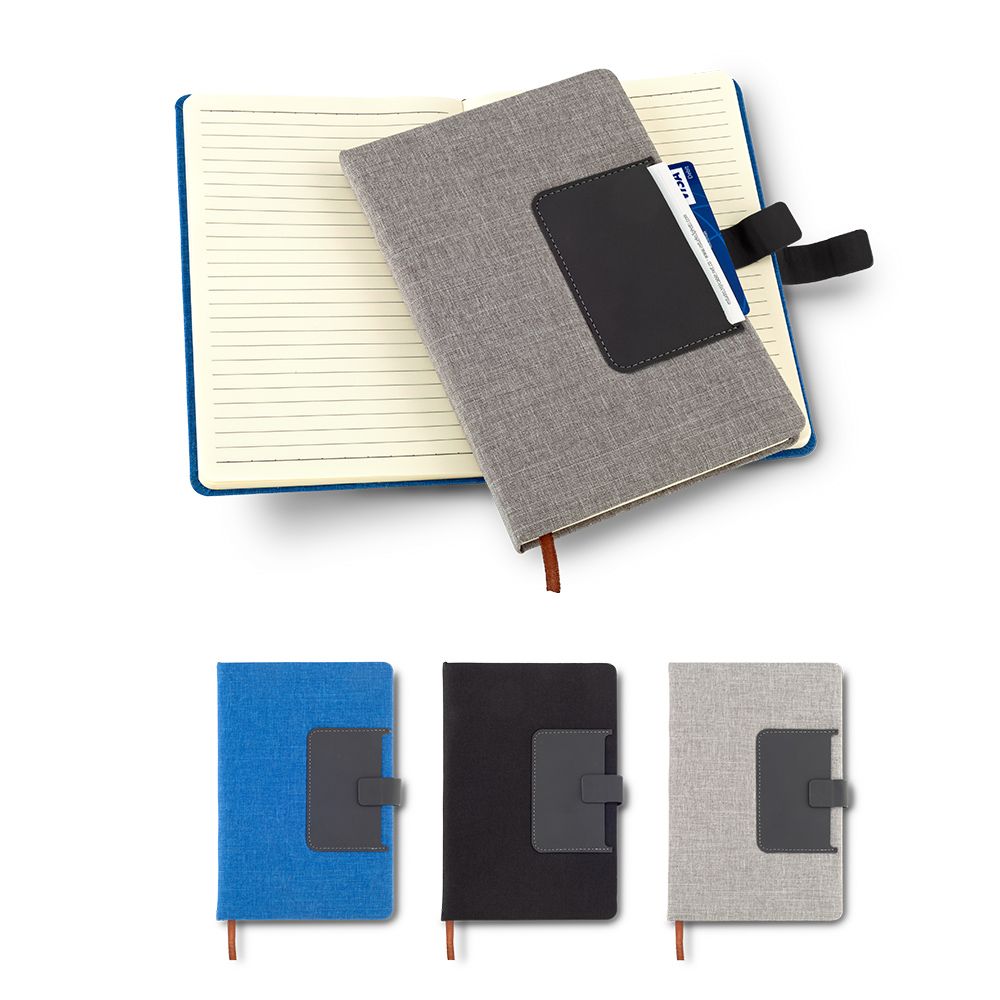 Libreta con cubiertas en poliéster, con tarjetero. 96 hojas de papel color crema. Medidas: 14.5 cm x 21 cm x 1.5 cm Marca: 5 cm / Screen Ficha Técnica