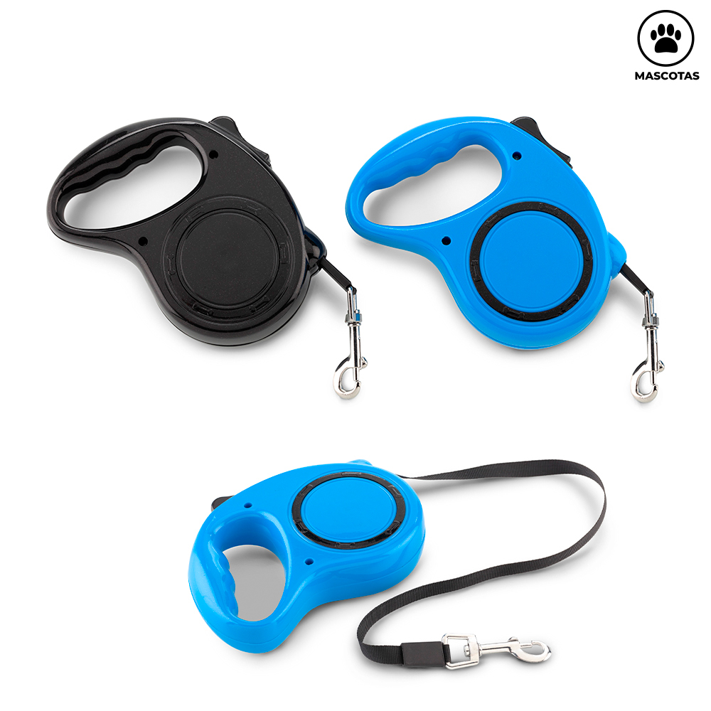 Correa plástica retráctil para mascotas. Con extensión de hasta 3 metros. Freno de mano. Medidas: 13 cm x 9.5 cm x 3 cm. Marca: 1.5 cm / Tampografía.
