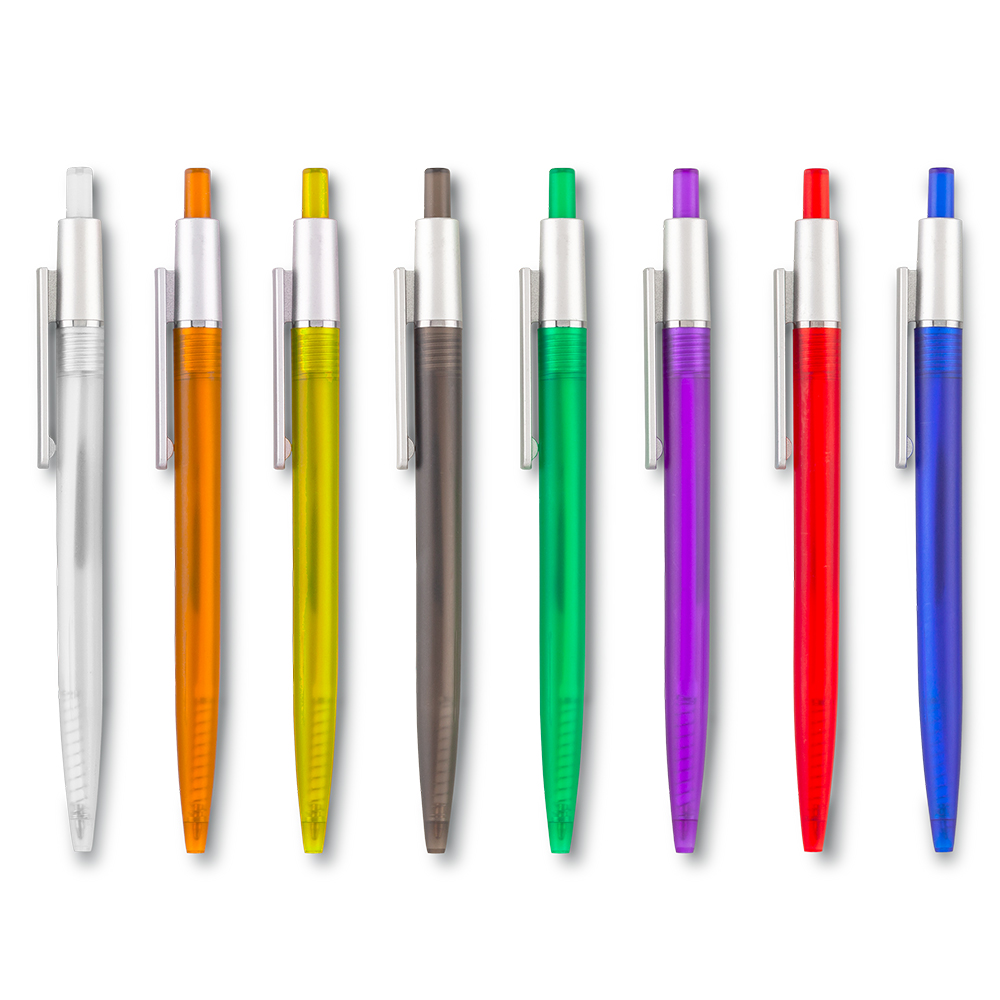 Bolígrafo plástico elaborado con fibra de trigo (50% aprox). El porcentaje de material ecológico tiene un promedio de biodegradabilidad de 2-3 años después del fin de su vida útil. Con logo en alto relieve Eco Friendly. Mecanismo Twist. Medidas: 13.2 cm . Marca: 5 cm X 0.5cm (barril inferior) / Tampografía Venta mínima y en múltiplos de caja de 50 unidades.