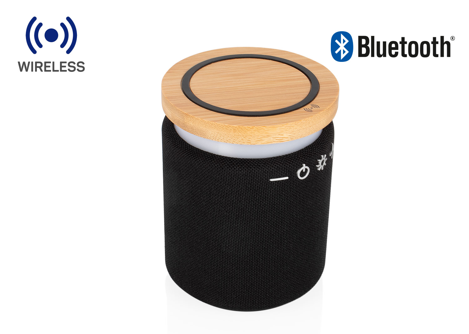 Altavoz Bluetooth con diseño multifuncional que incluye luz LED decorativa y maceta con sensores táctiles que permiten reproducir sonidos al tocar la planta; cuenta con puerto micro USB para carga, botón de control de iluminación con 7 colores disponibles, y diseño inferior con salida de agua para mantener la planta en buen estado. Ofrece conexión Bluetooth 5.0 con alcance de hasta 10 metros, altavoz de 5W, batería de 1,200 mAh con hasta 12 horas de reproducción, y controles básicos para reproducción, encendido/apagado y cambio de modo. Color: Blanco / Gris Claro